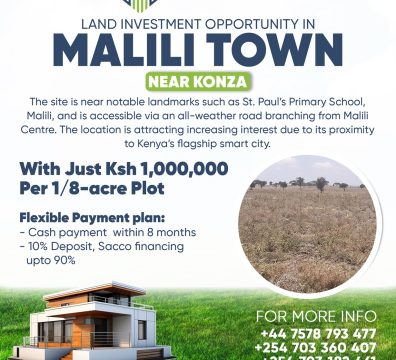 The site is near notable landmarks such as St. Paul’s Primary School, Malili, and is accessible via an all-weather road branching from Malili Centre. The location is attracting increasing interest due to its proximity to Kenya’s flagship smart city.